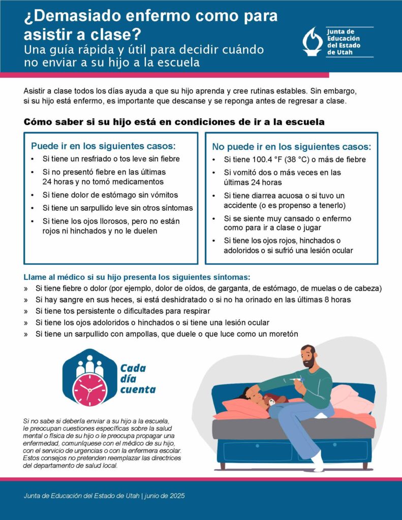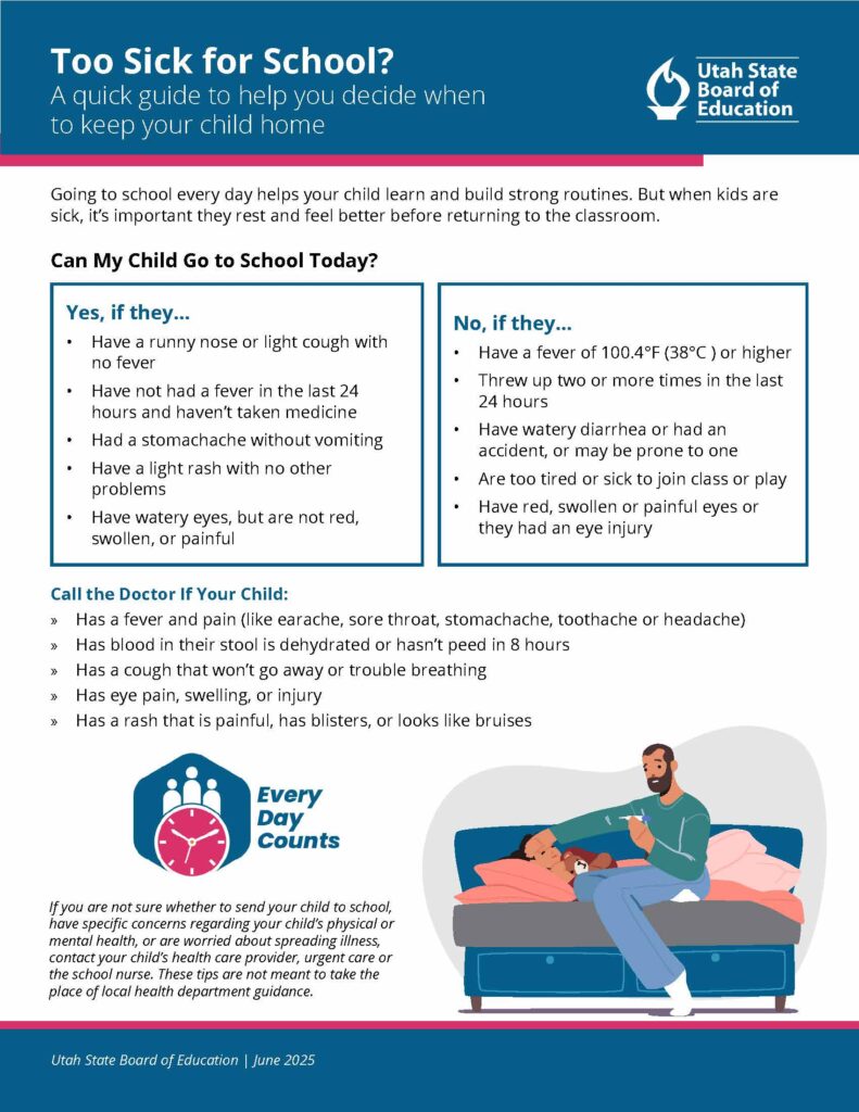It can be difficult to know when to send your child to school and when to keep them home if they aren’t feeling well. The tip sheet above can help you make that decision by detailing what symptoms indicate if they are too sick to be in school and when they really could go to school so they don’t miss out on important learning.