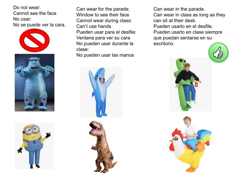 - If your student does not have a costume but wants to dress up, we will have some extra costumes for students to wear just for the school day.