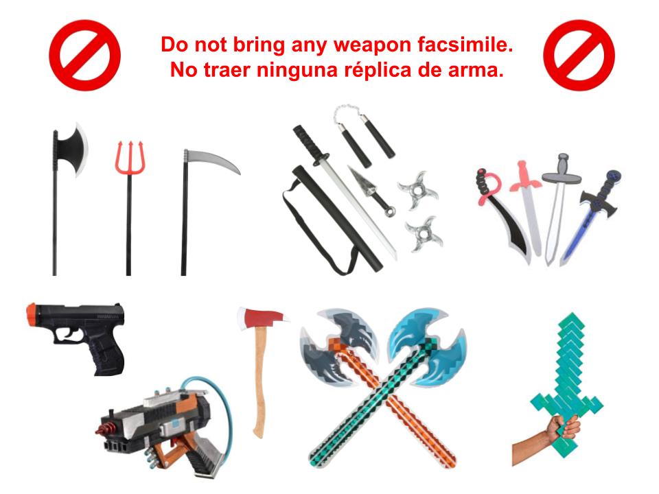 - Please know that costumes are optional. In choosing a costume to wear to school, note that costumes should not interfere with learning or have accessories that can be used as weapons or weapon facsimiles. See examples above.