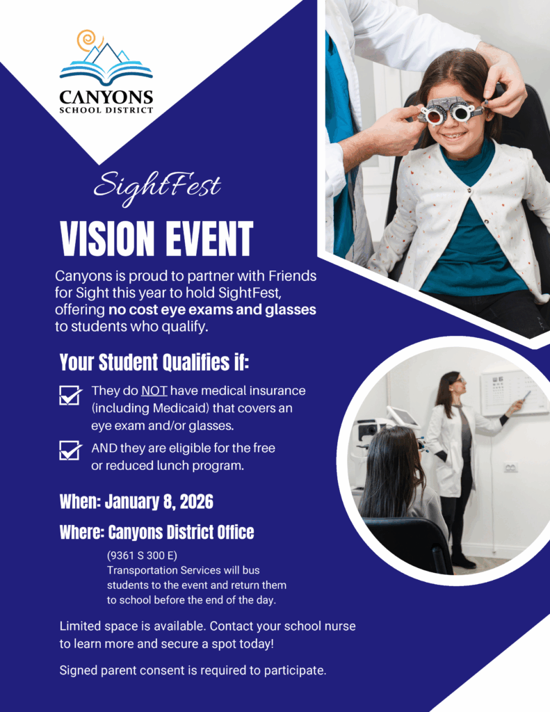 Canyons School District is teaming up with Friends for Sight to offer no cost eye exams and glasses to students who qualify.